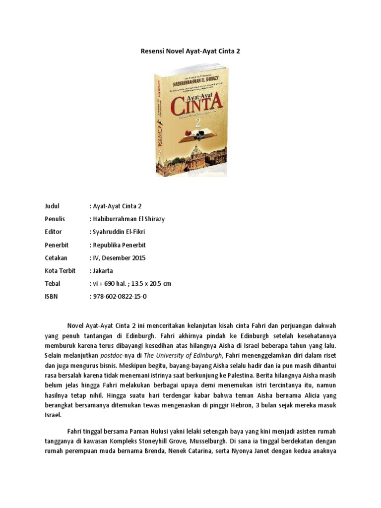 Resensi Novel Ayat Ayat Cinta 2 Manifestasi Konsep Sastra Profetik Yang Berlandaskan Amar Ma Ruf Nahi Munkar Riawani Elyta