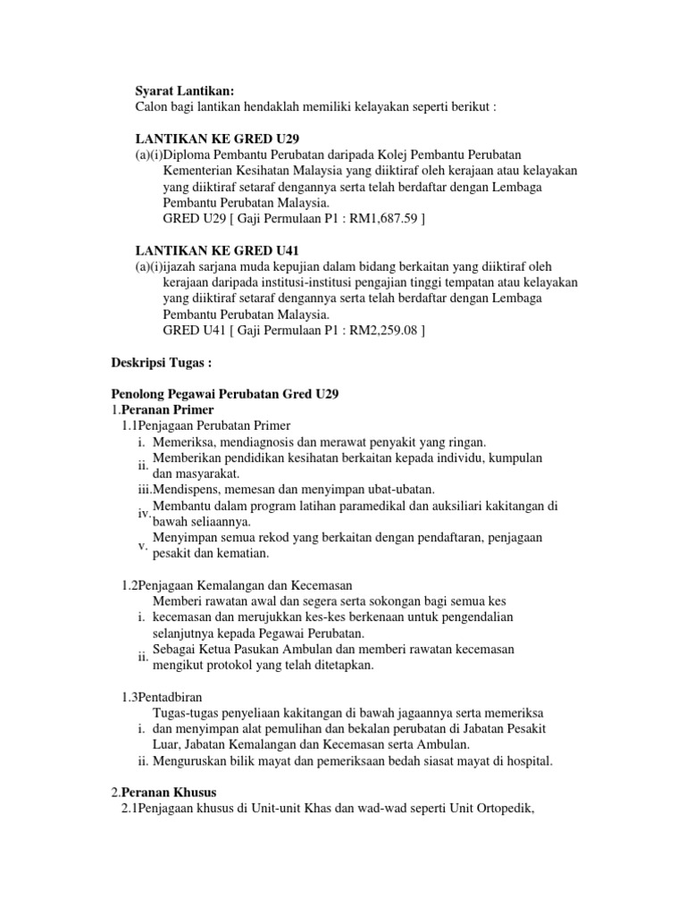 Deskripsi Tugas Penolong Pegawai Perubatan Jawatan Kosong