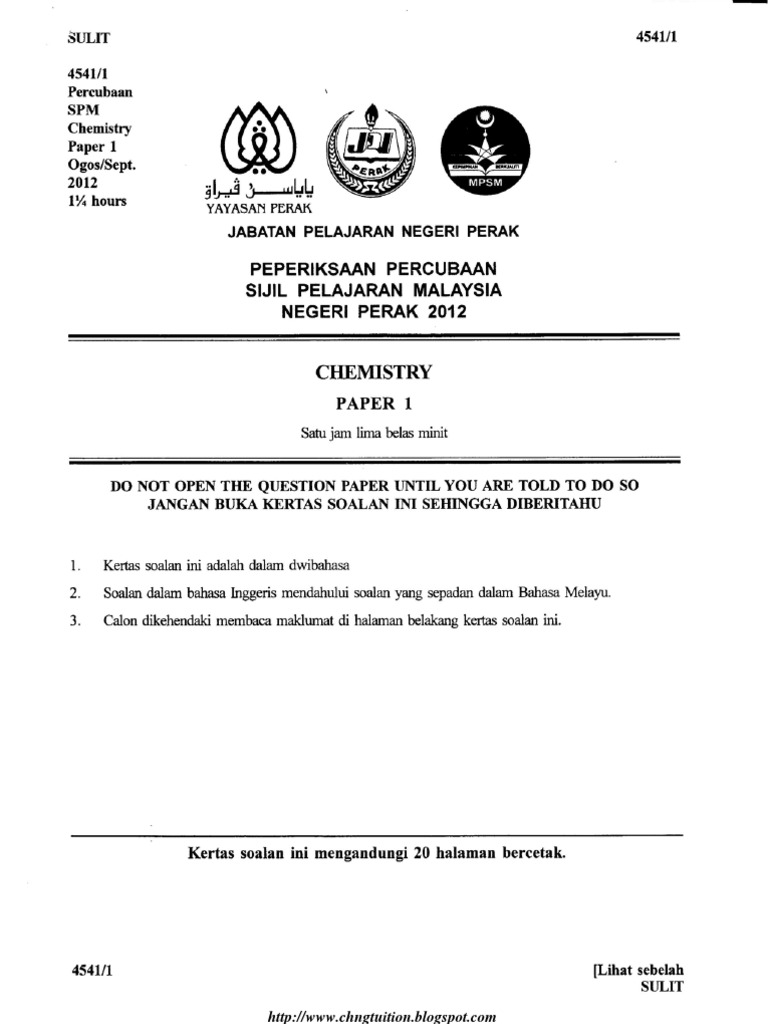 Spm Trial 2012 Chemistry Qa Perak Chlorine Alloy