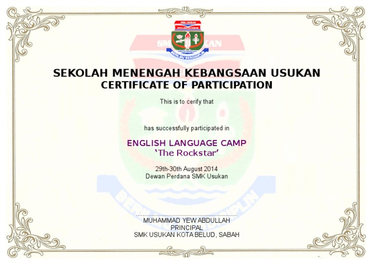 What to Upload to SlideShare SlideShare. Sijil Penghargaan In English Malaysian higher school certificate is a pre university examination taken by students in malaysia. Sijil Penglibatan Penyertaan Discipline Honour Integrity.