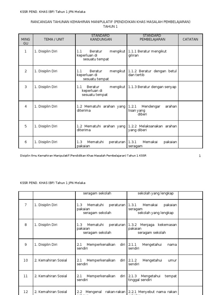 For more information and source. Rancangan tahunan pengurusan diri pendidikan khas oleh abdul murad abd hamid smk sri rahmat jb. Kurikulum standard sekolah rendah pendidikan khas masalah pembelajaran.