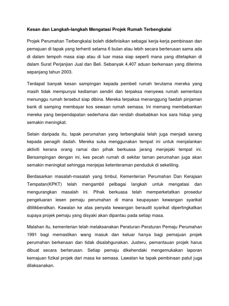 Punca Masalah Perumahan Di Malaysia