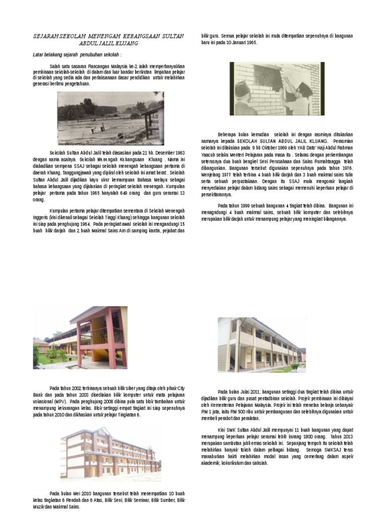 Sejarah Smk Sultan Abdul Jalil Kluang Johor