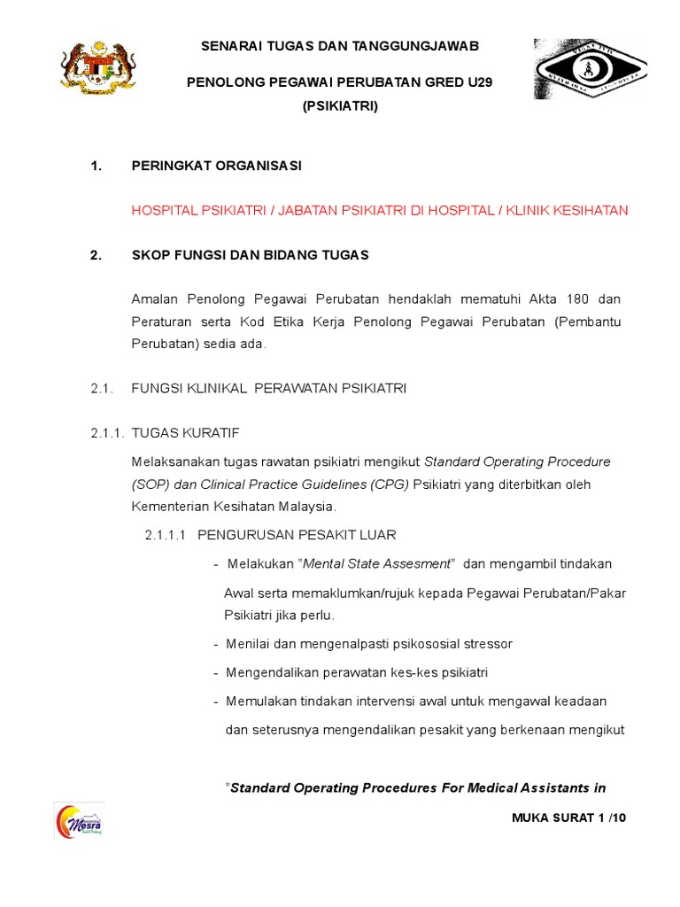 U 29 Senarai Tugas Dan Tanggungjawab Ppp Psikiatri U29 Doc