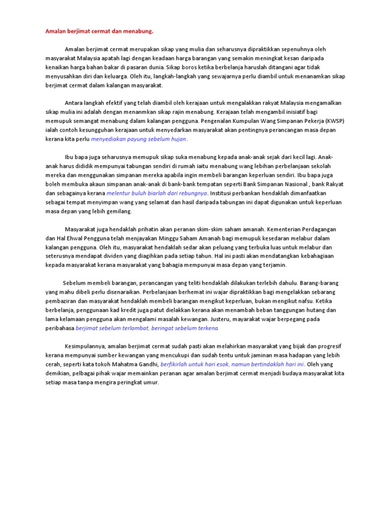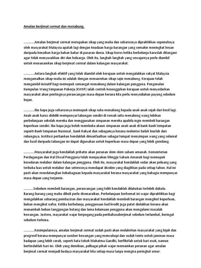 Contoh Karangan Spm Amalan Berjimat Cermat