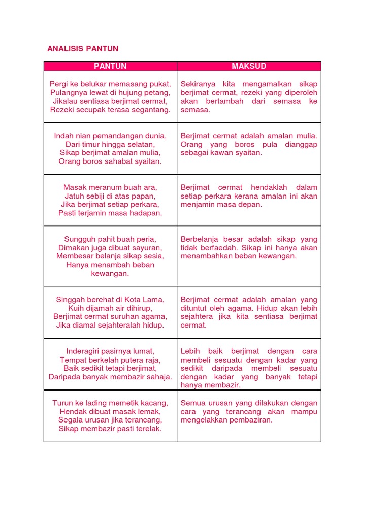 Pantun 4 Kerat Berjimat Cermat