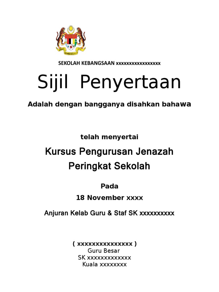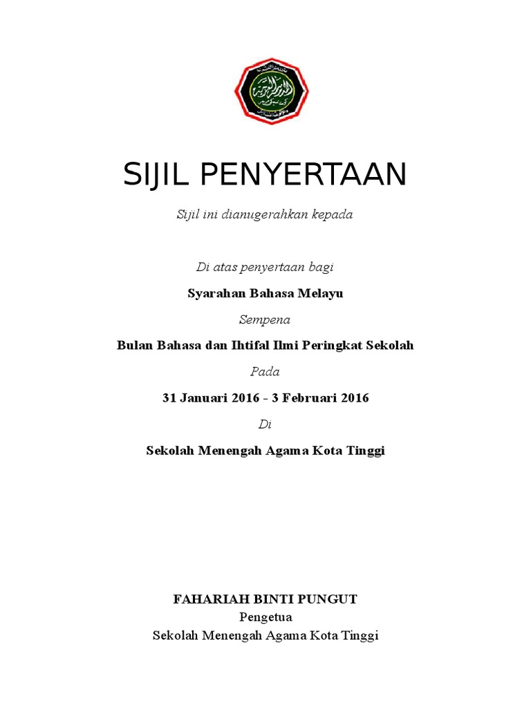 Thanks to example mcs. More meanings for sijil. Yuran penyertaan RM60 RM65 lengan panjang dan anda akan menerima sehelai t-shirt jenama Carisbrook medal sijil penyertaan.