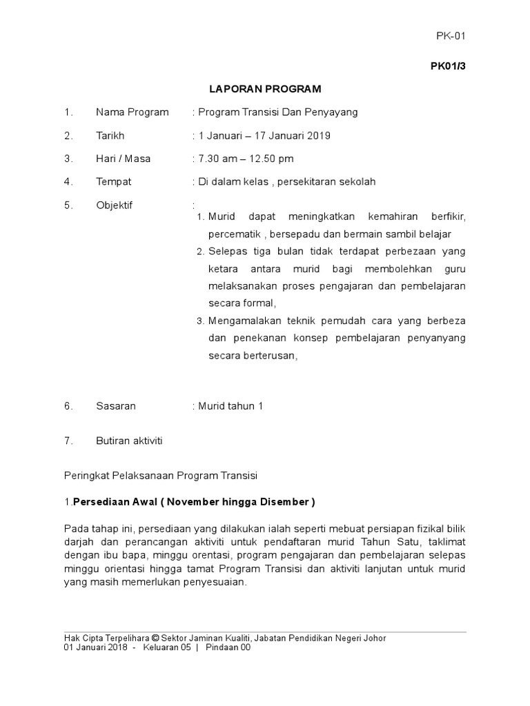 Contoh Kertas Kerja Program Transisi Tahun 1 Pendidik2u