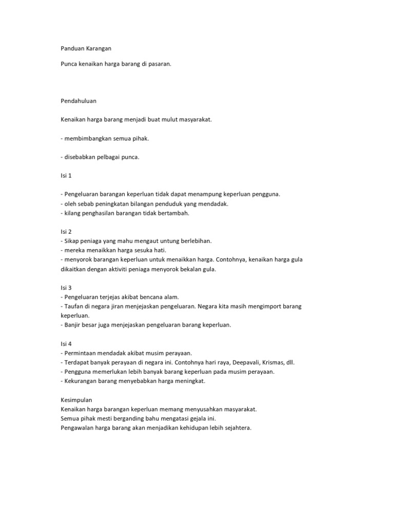 Panduan Karangan Punca Kenaikan Harga Barang Di Pasaran