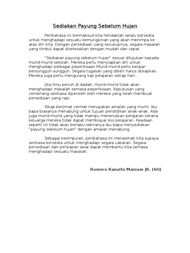 Before anything bad happens you should avoid it from happening by doing as such. Sebagaimana yang kita ketahui payung amatlah penting bagi kita jika kita di timpa hujan. Bahasa Melayu Tahun 3 Sk St Mary Papar Pepatah Sediakan Payung Sebelum Hujan Peribahasa Pages 1 7 Text Version Anyflip Pelajari Bm Bersama Sama 1 Hari 1 Pepatah Sediakan Payung Sebelum Hujan Tingkatan 3 Peribahasa.