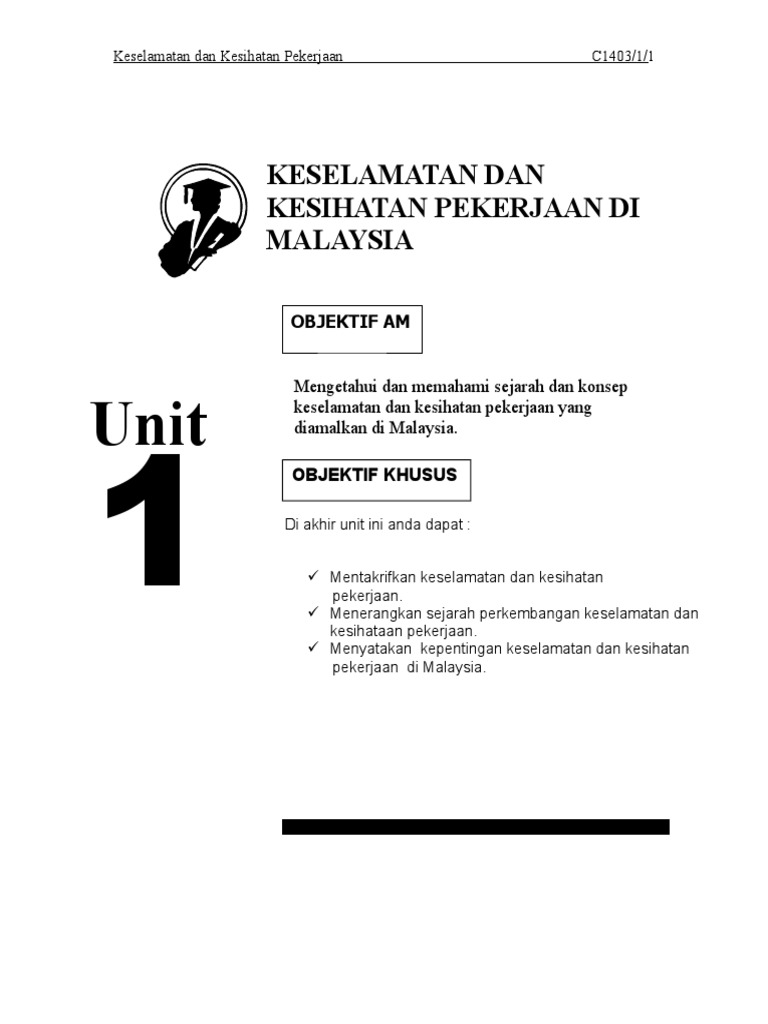 C 1403 Keselamatan Dan Kesihatan Pekerjaan I Unit 1