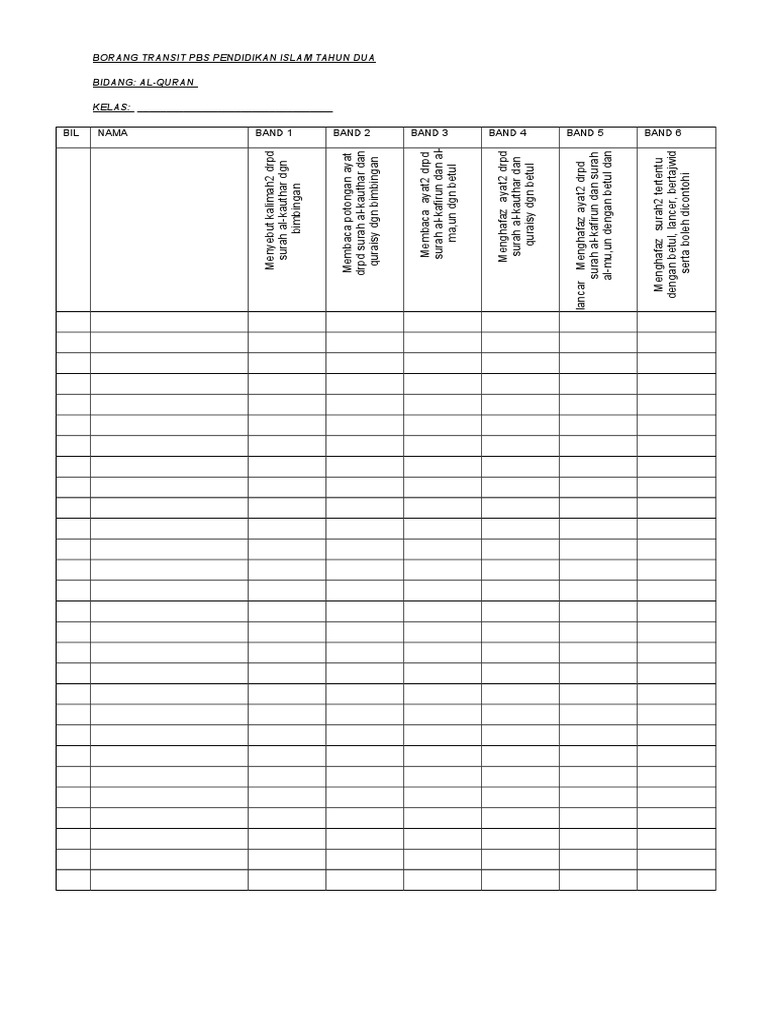 Borang Transit Pbs Pendidikan Islam Tahun Dua Latest
