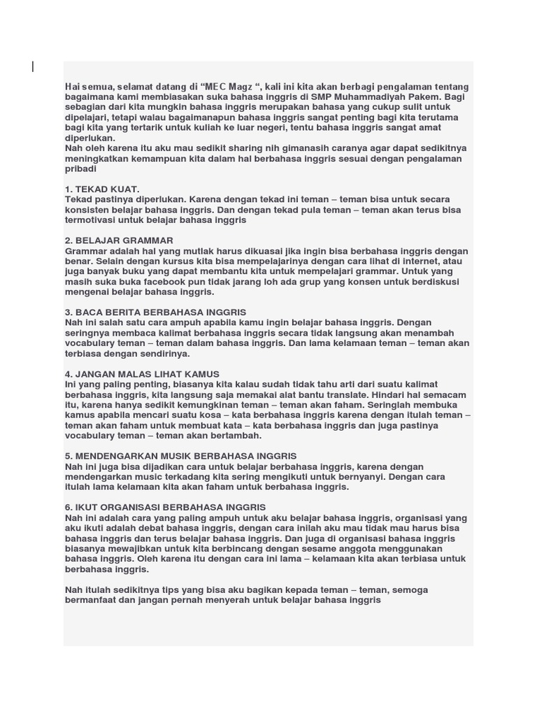 Jadi inilah alasan penting dari belajar bahasa Inggris. As well merupakan frasa dalam Bahasa Inggris yang tersusun dari kata dasar well yang berarti baik. Bagaimana dengan Bahasa Inggris.